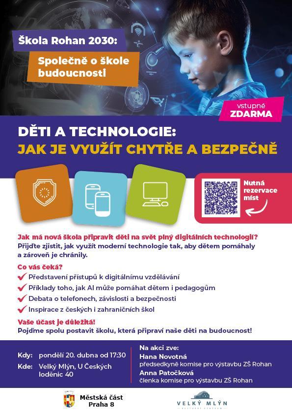 Jak skloubit moderní technologie s bezpečným vzděláváním? A jak bude vypadat nová základní škola na Rohanu? Přijďte diskutovat o budoucnosti vzdělávání v naší městské části!