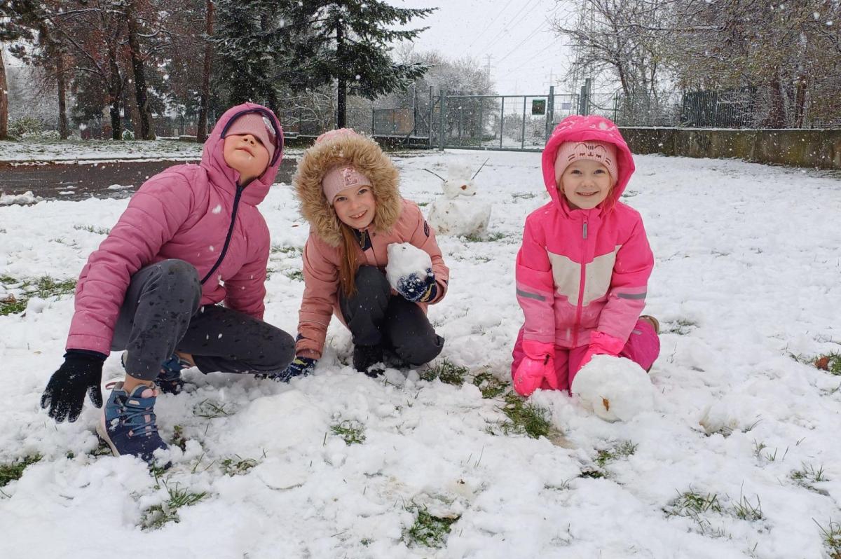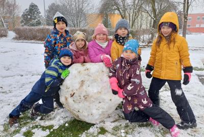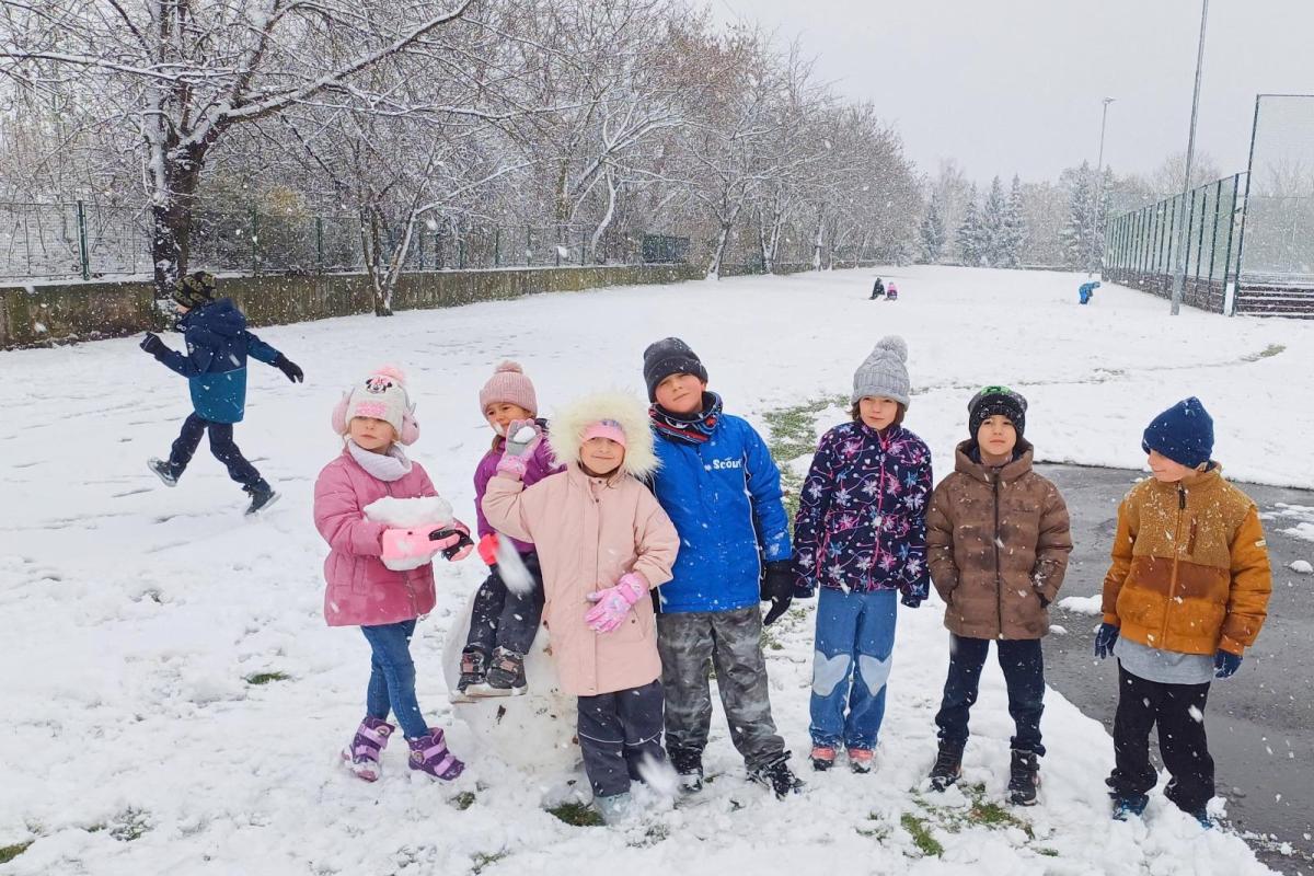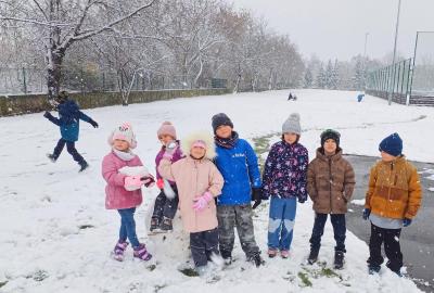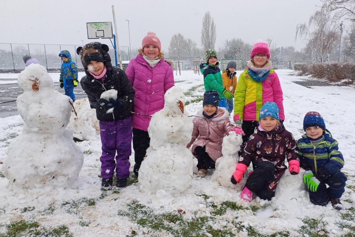 Prvňáčci si užili první sněhovou nadílku